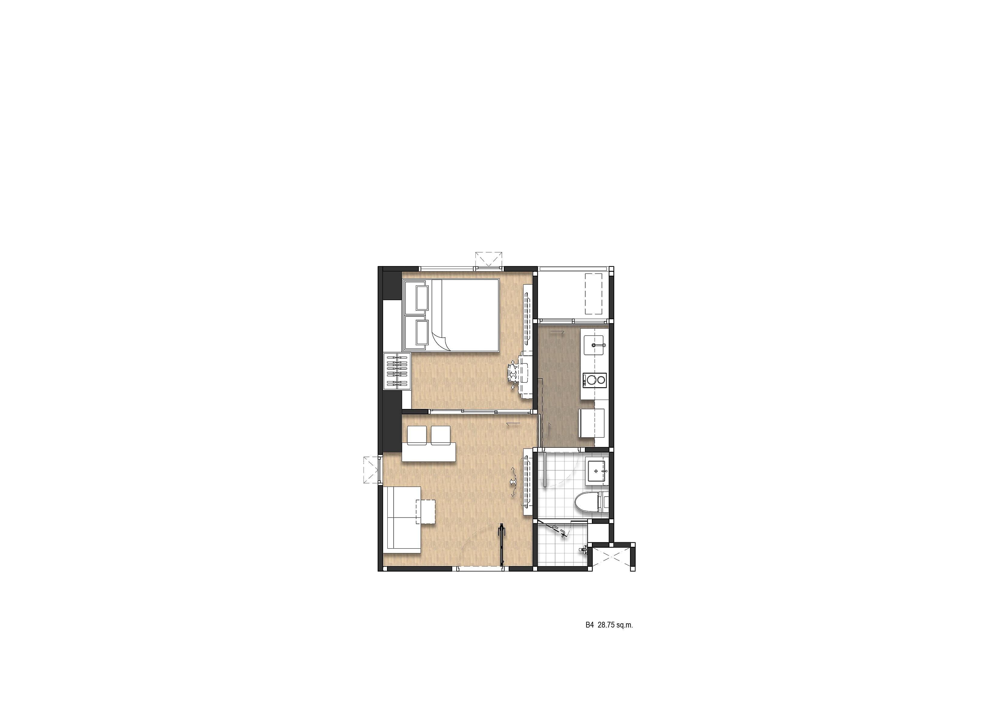 - One Bedroom (27.95 – 28.85 sq.m.)